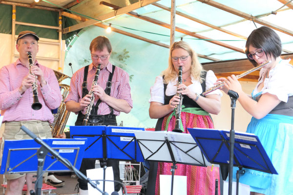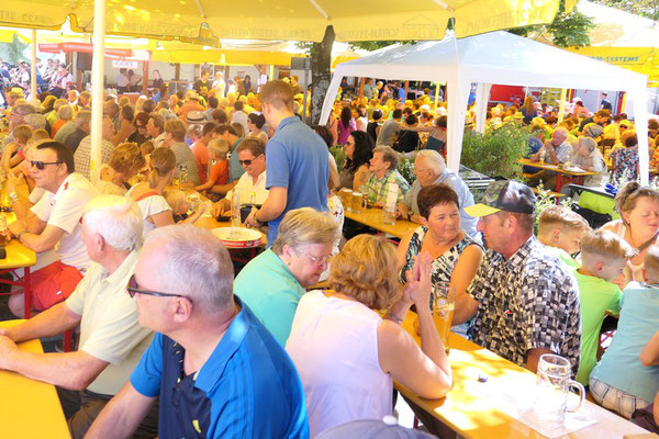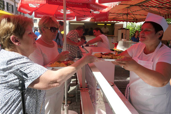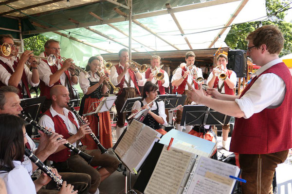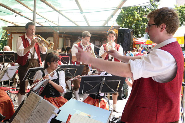 Während die Musikkapelle Baienfurt und der Leitung von Dieter Schneider exzellente Frühschoppenmusik auf der Bühne bot, wurde zum großen Mittagstisch geladen. Innerhalb von zwei Stunden gingen 900 geschmälzte Maultaschen sowie ofenfrischer Kasslerbraten mit hausgemachtem Kartoffelsalat über den Tresen. Die Musikkapelle Herlazhofen mit Dirigent Fabian Fischer, Reute begeisterte am Nachmittag alle Freunde und Fans guter Blasmusik.