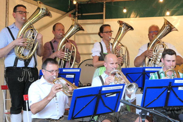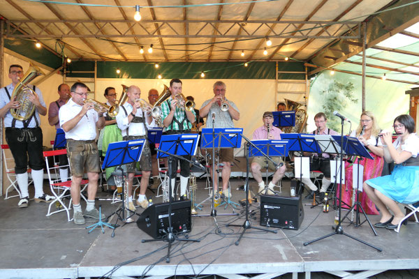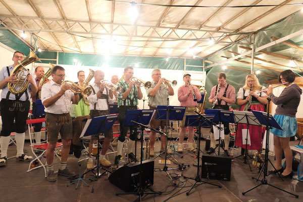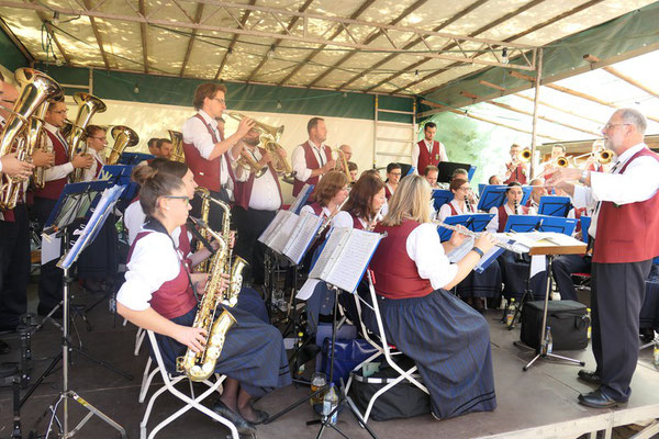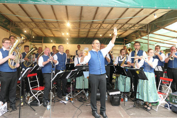 Das große Finale übernahmen die eigenen Musikanten mit Dirigent Erich Steiner. Eine Top-Besetzung eroberte im Nu die Herzen der in Scharen ankommenden Besucher. Neben dem Gesangsduo Sabine und Uwe und auch Vera Sigg wurden auch zahlreiche Instrumental-Solisten mit eingebunden. Tosenden Applaus erhielt dabei Gerolf Maucher mit seiner Solotrompete beim „Alten Dessauer“.