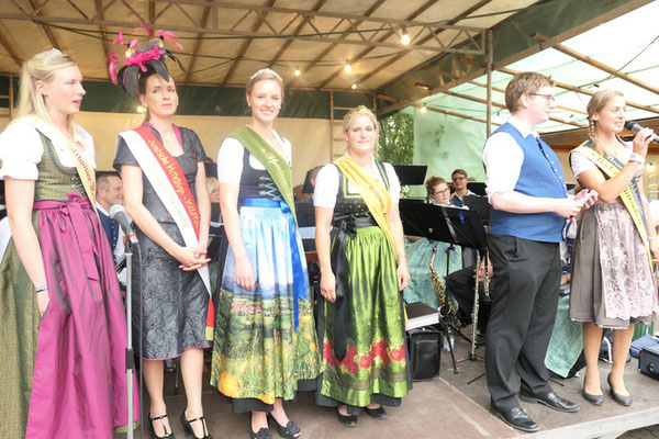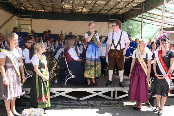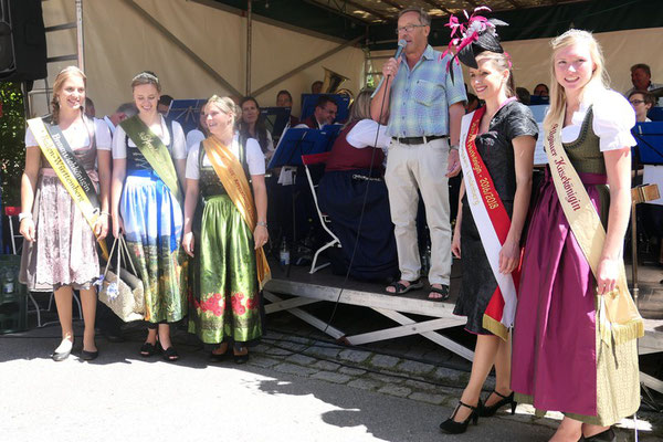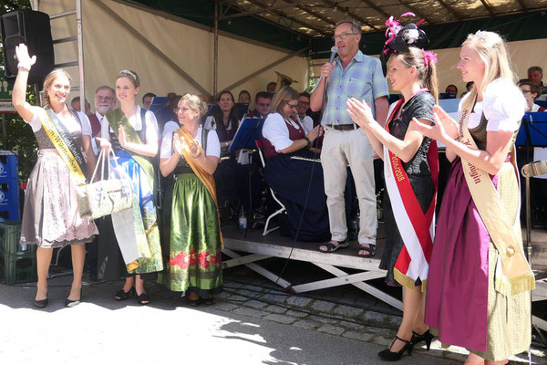 Das besondere Highlight war die Königinnen-Parade, angeführt und eingefädelt von der amtierenden Braunviehkönigin Beate Bühler, Hittisweiler. Sowohl um 12.30 Uhr wie auch um 18.00 Uhr strömten die Besucher, um die fünf „königlichen Hoheiten“ ganz nah zu erleben. Vorstand Rudi Heilig wie auch Fabian Fischer erhielten viele Details von den „Majestäten“ in einer Fragerunde präsentiert. Mit einer überreichten Rose durften die Hoheiten anschließend das „Bad“ in der Menge genießen.